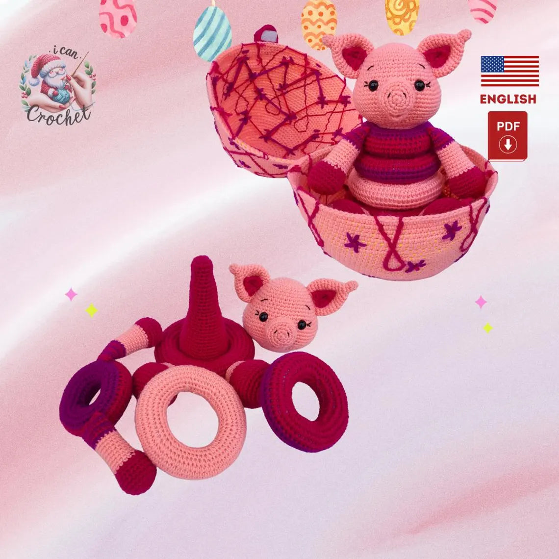 Hop into the Easter spirit with The Ultimate Easter Crochet Toy Patterns Bundle, featuring 4 adorable Easter characters with their eggs: Easter Bunny crochet pattern, Easter Chick crochet pattern, Easter Sheep crochet pattern, and Easter Pig crochet pattern. Create delightful crochet toys that will bring joy to children during the Easter season. These charming designs allow little ones to engage in a whimsical and festive experience as they play, stack, and assemble their own Easter-themed toys.